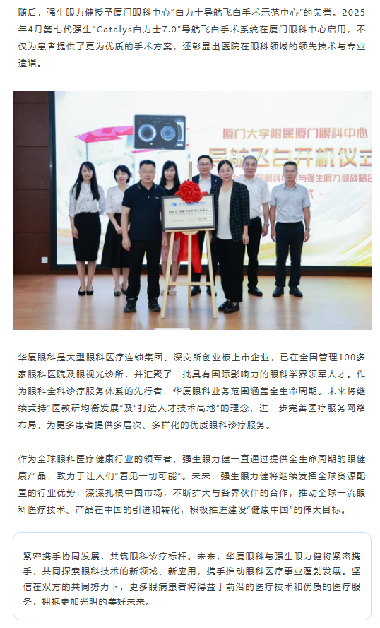 共筑眼科诊疗新标杆!强生眼力健携手太阳成tyc7111cc开启“导航飞白”新时代