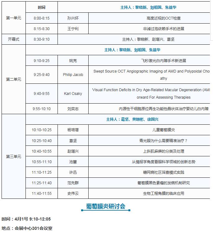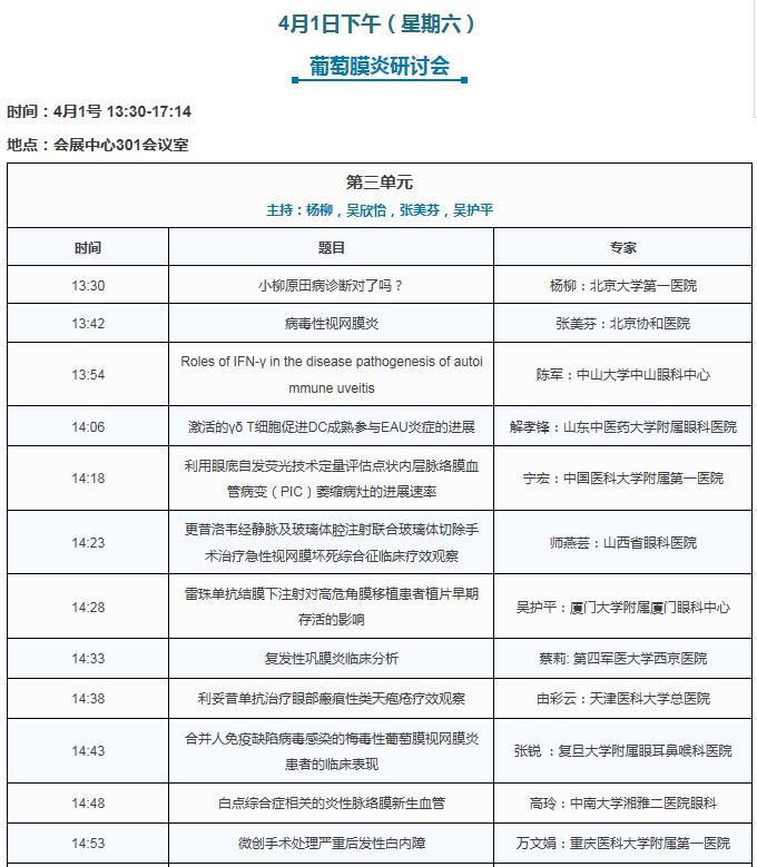 2017年“ 太阳成tyc7111cc环球论坛暨 葡萄膜炎学术研讨会”会议日程