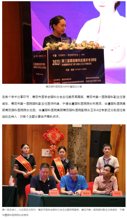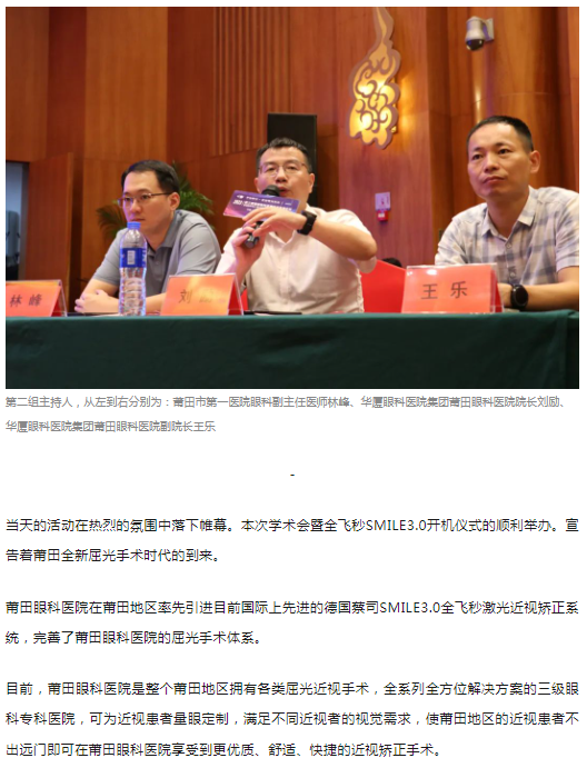 7月29日,由莆田市医学会、莆田市科学技术协会主办,太阳成tyc7111cc集团莆田眼科医院、赵堪兴院士专家工作站协办的第三届莆田眼科近视手术学术会暨德国蔡司全飞秒SMILE3.0开机仪式在莆田隆重举行。