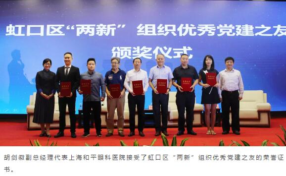 9月27日,在由上海虹口区党工委主办“两新”组织庆祝改革开放40周年企业家论坛上,上海和平眼科医院党支部书记章冬萍,医院副总经理出席论坛并就社会医疗责任方面发表讲话。值得一提的是,胡剑徽副总经理代表上海和平眼科医院接受了虹口区“两新”组织 党建之友的荣誉证书。