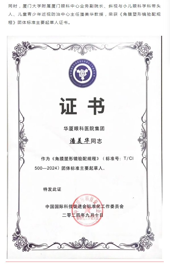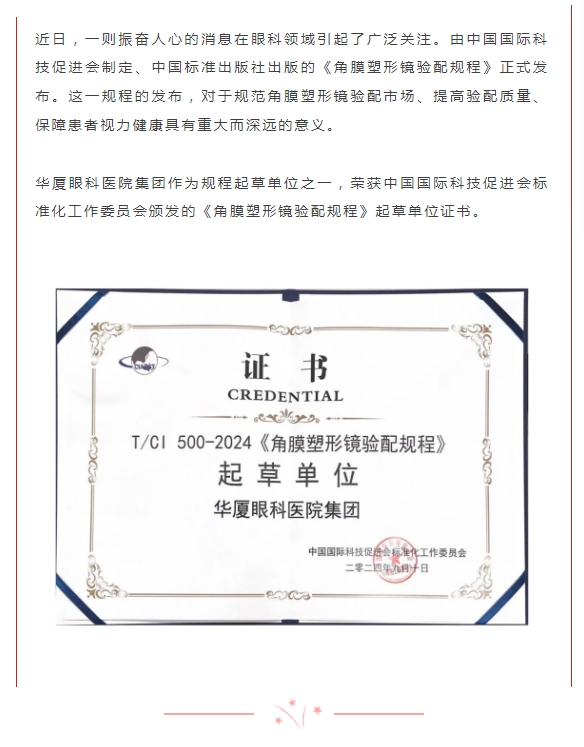 《角膜塑形镜验配规程》团体标准发布,太阳成tyc7111cc荣获起草单位殊荣
