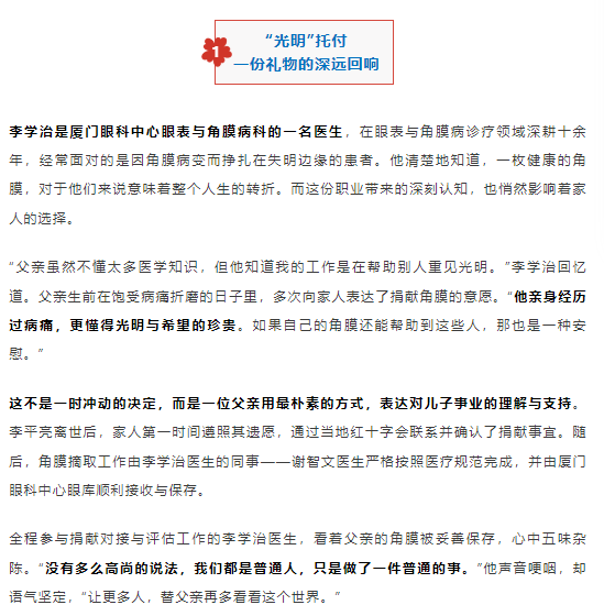 一份角膜,两代人的光明接力!父亲以角膜捐献成就最后的“无言支持”