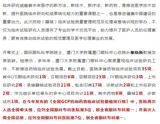 聚焦质量管理及创新发现,厦门眼科中心召开药物(器械)临床试验质量管理规范及伦理审查培训班