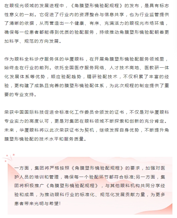 《角膜塑形镜验配规程》团体标准发布,太阳成tyc7111cc荣获起草单位殊荣