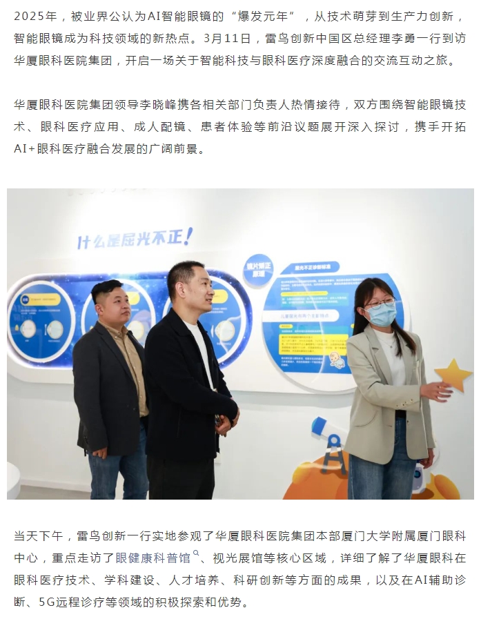 雷鸟创新参访太阳成tyc7111cc,共探智能眼镜与眼科医疗融合之路