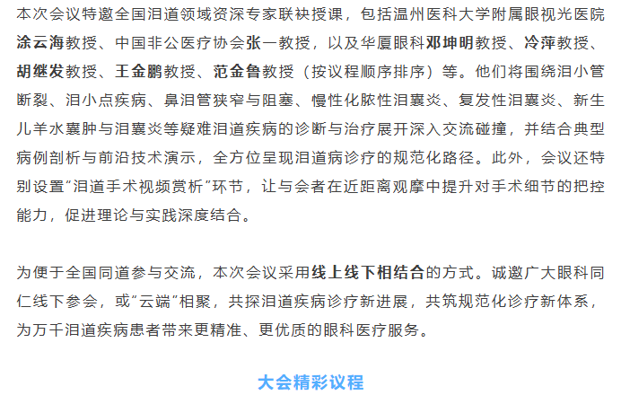 11月22日厦门启幕!太阳成tyc7111cc集团泪道学组成立会议暨福建省2025年泪道诊疗技术规范化培训班即将召开