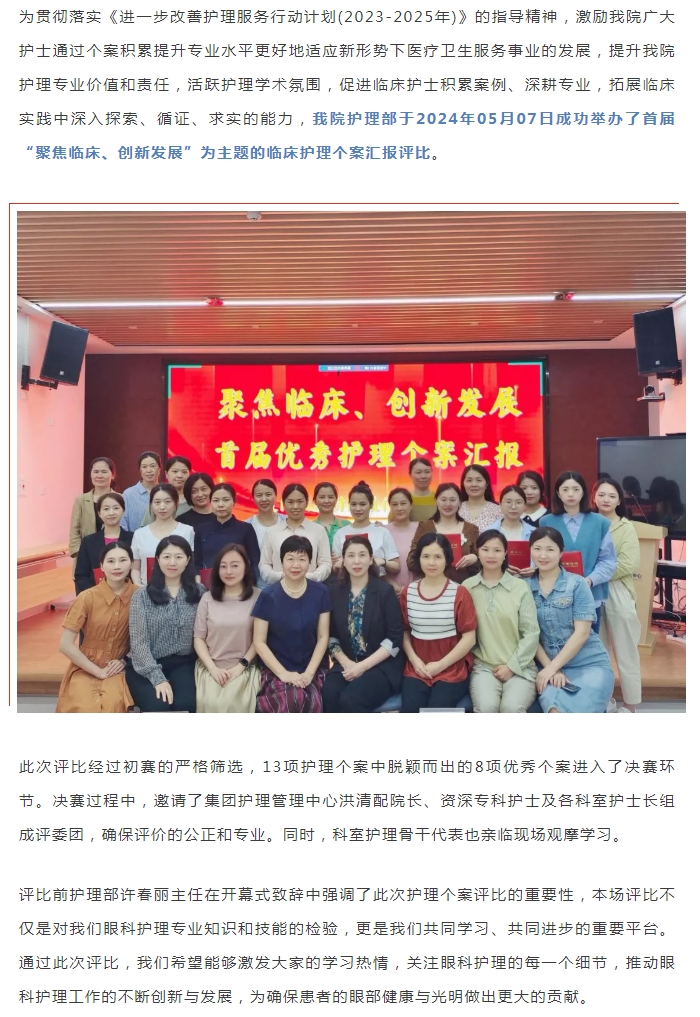 改善护理服务行动 | 厦门眼科中心成功举办首届临床护理个案汇报评比