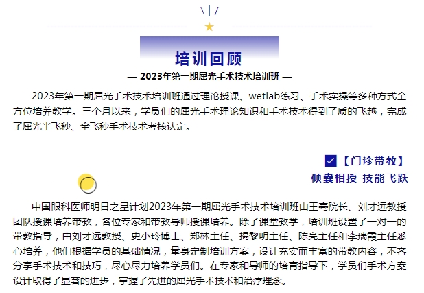 【2023年第一期屈光手术技术培训班】圆满结业!师生相伴 梦想起航