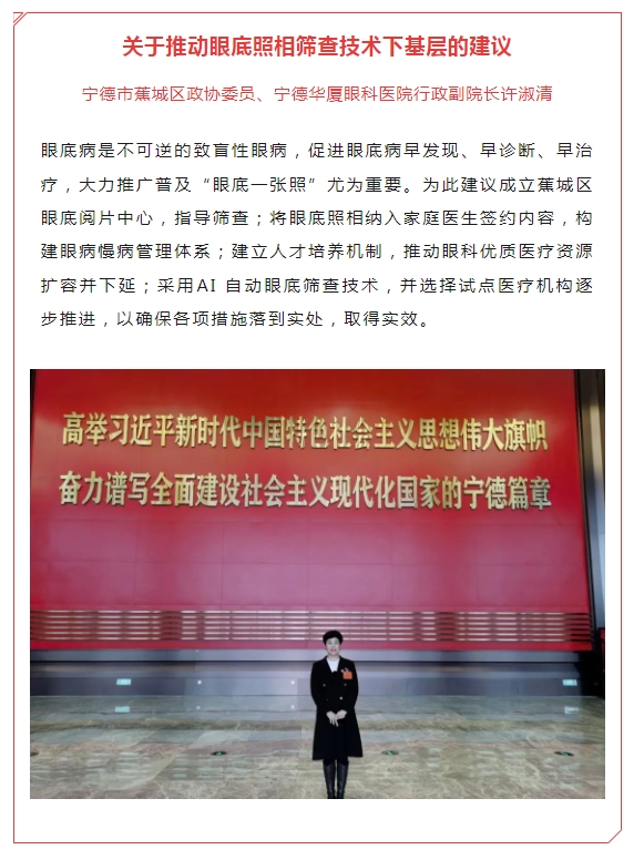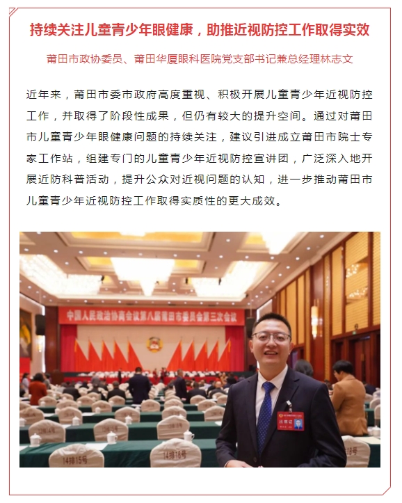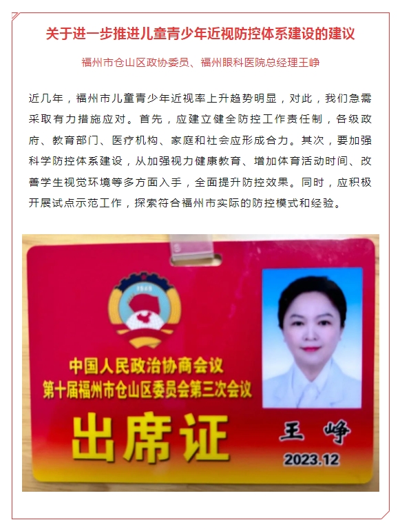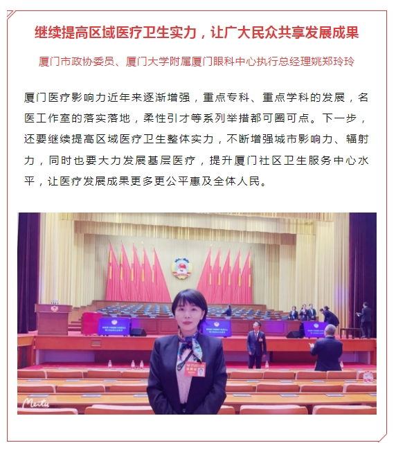 除此之外,镇江市人大代表、镇江康复眼科医院执行董事丁旭辉,厦门市思明区政协委员、厦门大学附属厦门眼科中心副总经理赖玮玲,荆州市沙市区政协委员、荆州太阳成tyc7111cc总经理王海波等代表委员也积极参会,履职尽责。