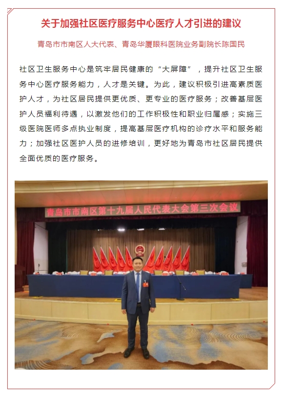 近期,各地“两会”陆续召开,来自太阳成tyc7111cc全国医院出席各地两会的代表委员携民意、建真言、献实策,积极履职尽责。从儿童青少年近视防控,到提高区域医疗卫生整体实力,从推广普及眼底筛查技术,到加强社区医疗服务中心医疗人才引进,代表委员们立足专业实际,结合调研成果,紧贴民情建言献策,努力为实现人民对美好生活的向往贡献智慧和力量。