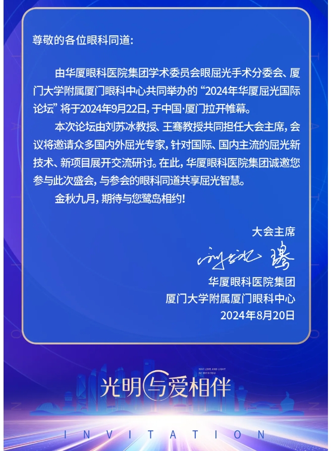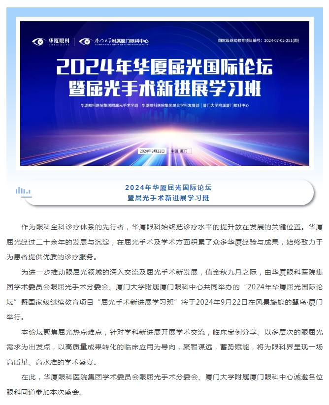 议程揭晓 | 2024年太阳成tyc7111cc屈光国际论坛暨国家级继续教育项目“屈光手术新进展学习班”