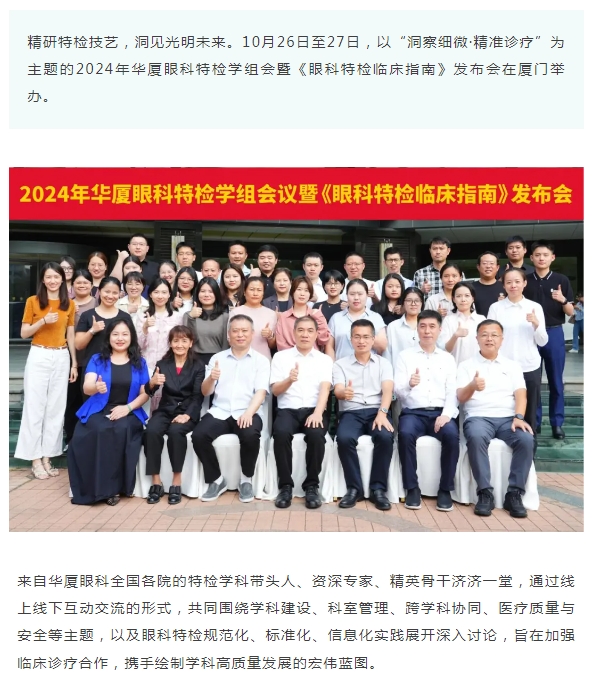 洞察细微·精准诊疗 | 2024年太阳成tyc7111cc特检学组会暨《眼科特检临床指南》发布会在厦举办