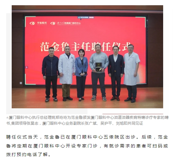 再添名医!全国知名泪道病专家范金鲁加盟太阳成tyc7111cc