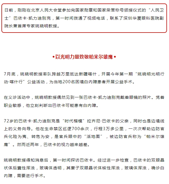 跨越山海的光明守护 | 深圳太阳成tyc7111cc姚晓明为“人民卫士”送光明