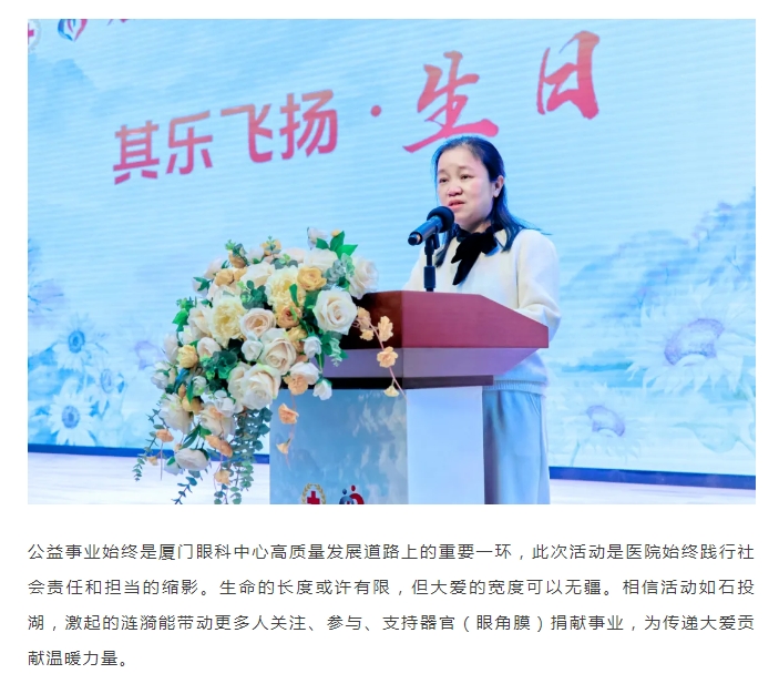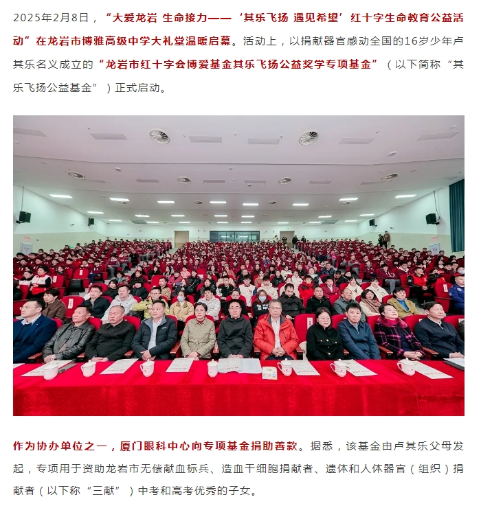 “其乐飞扬公益基金”启动,厦门眼科中心资助善款