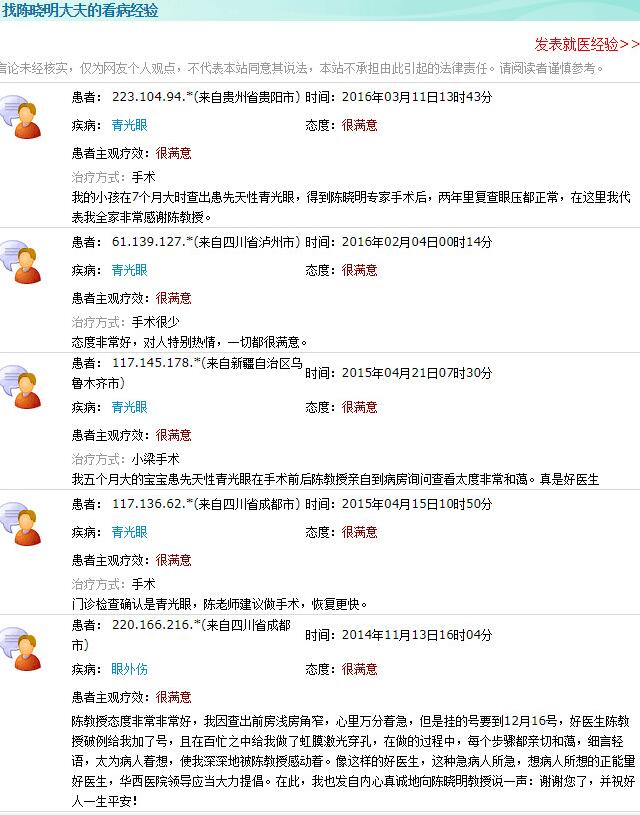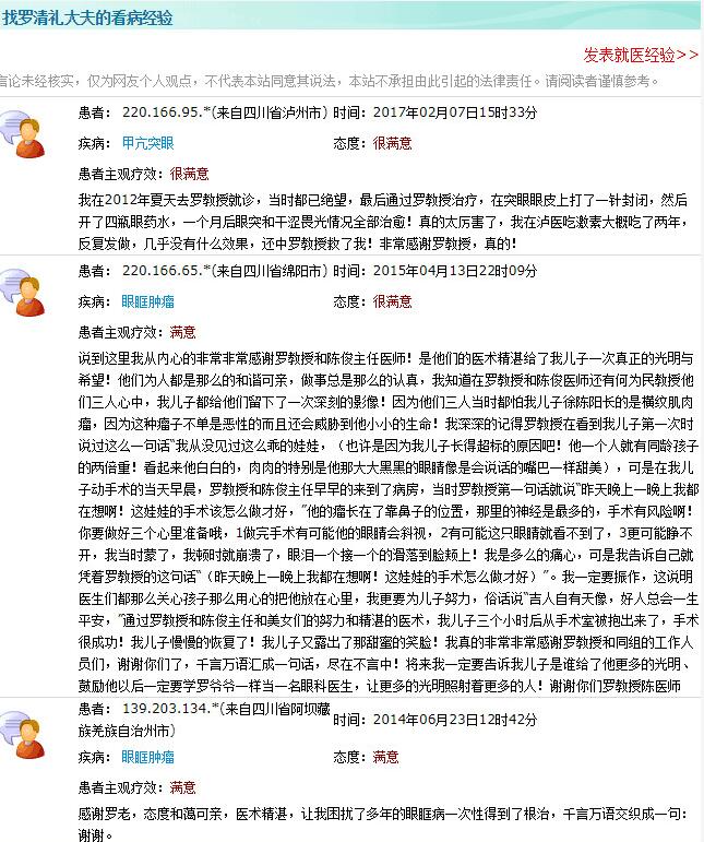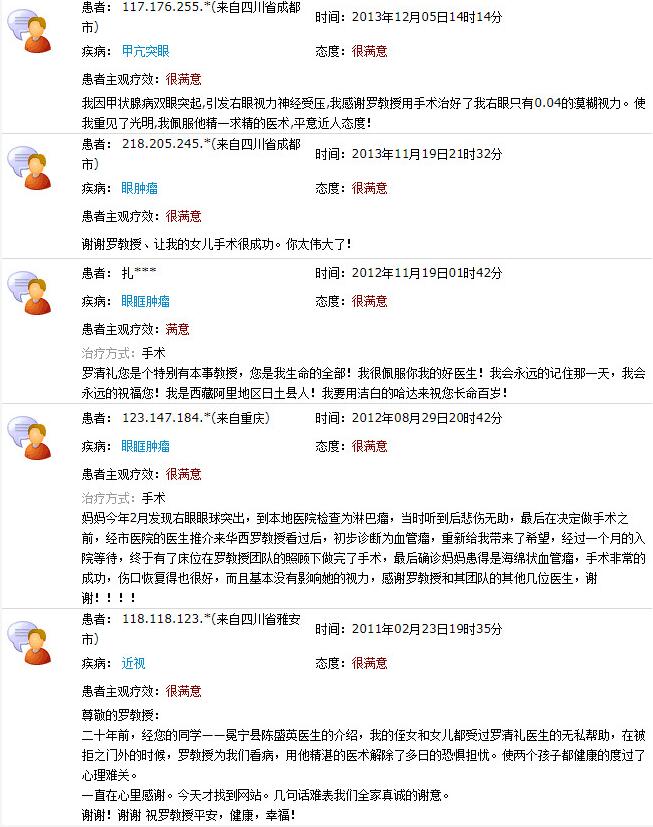 成都太阳成tyc7111cc院长陈晓明教授、业务院长罗清礼教授网上患者评价